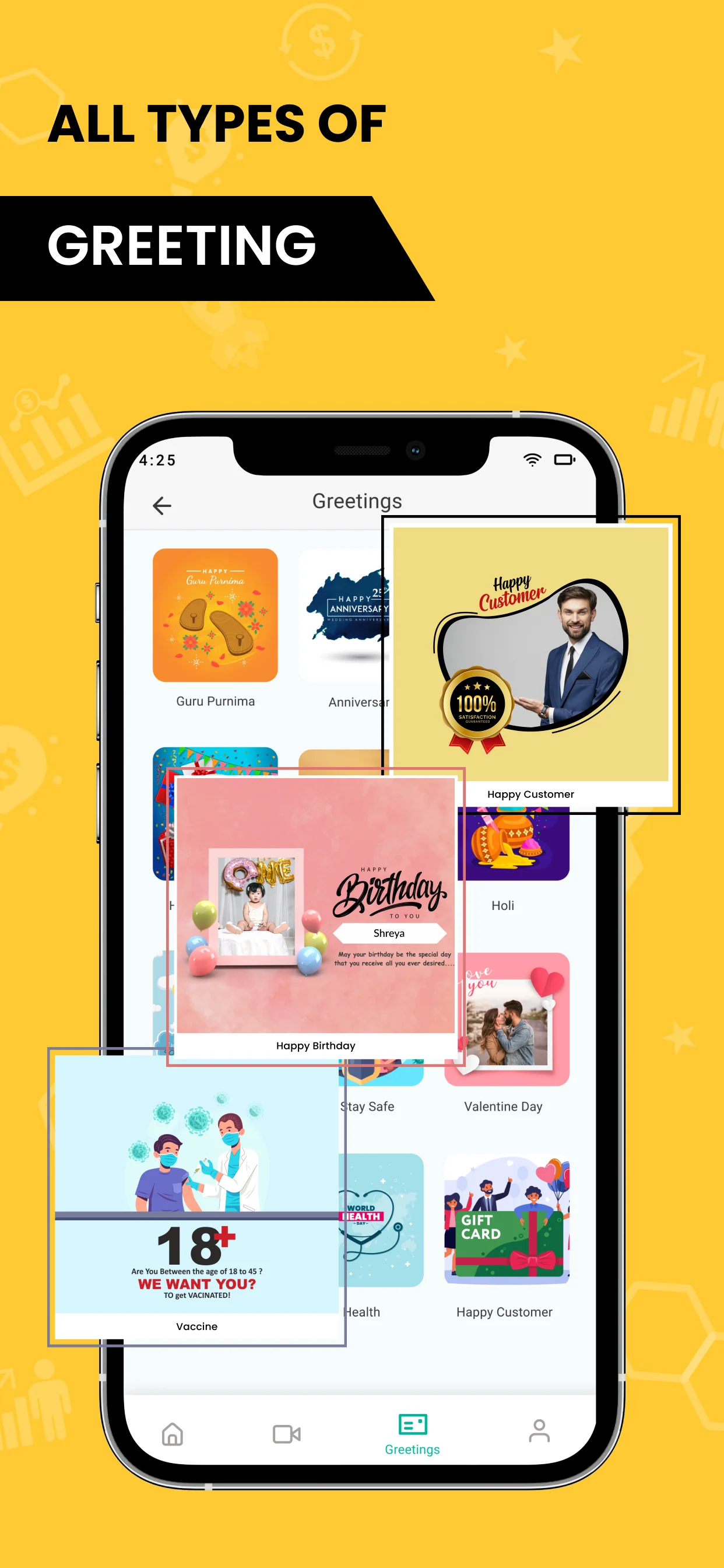 Greetings Cards Designs for all occasions such as Happy Birthday, Festival, Product Launch, Anniversary, Congratulations, RIP etc with quotes messages.